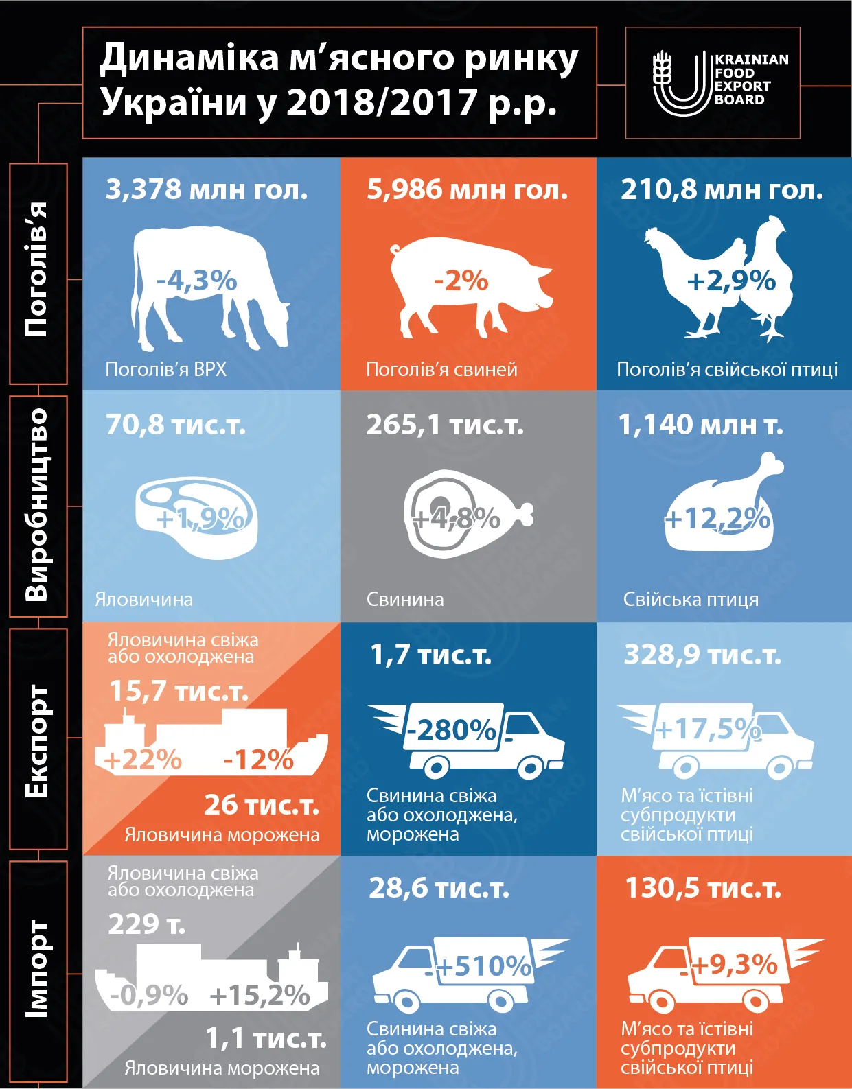 Динаміка м'ясного ринку України у 2018/2017 р. р.