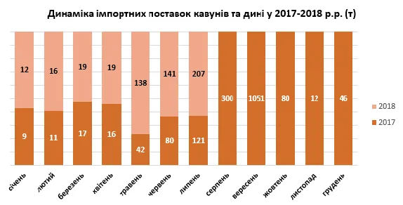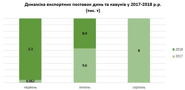 Експерти відзначають, що зниження експорту у поточному році викликане складністю виходу на ринок ЄС – головного споживача кавунів та динь. Цей ринок є досить важливим для ряду експортерів, і конкуренція на ньому висока. Відзначимо, що Україна займає 55 місце серед експортерів цих баштанних культур, а головними гравцями на світовому ринку є Іспанія, Мексика, Нідерланди та США.