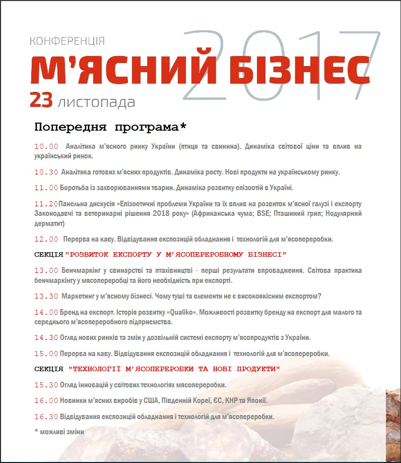 Попередня програма конференції "М'ясний бізнес"
