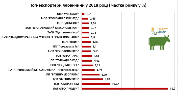 Наразі яловичина досить популярний вид м'яса з огляду на той факт, що для вітчизняних виробників був відкритий ще один ринок збуту - Саудівська Аравія. В продовження дослідження даного ринку, Аналітичний відділ Ради з питань експорту продовольства пропонує ознайомитись з головними вітчизняними експортерами яловичини (свіжої або охолодженої та мороженої) .
