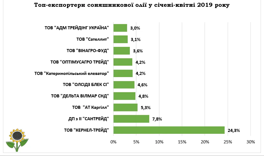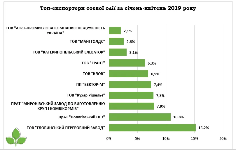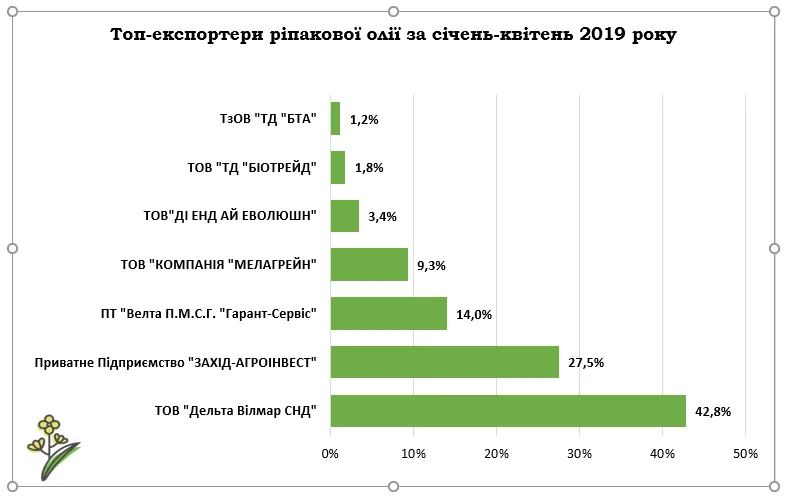 Аналітики Ради з питань експорту продовольства, представляють основних топ експортерів олійних культур за січень-квітень 2019 року.